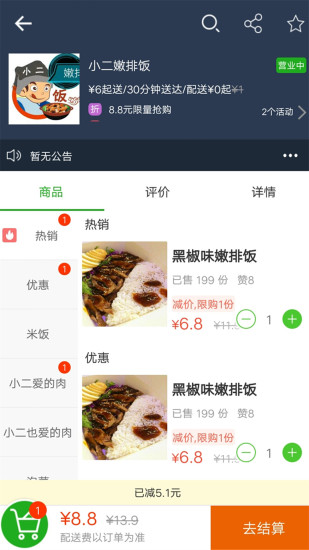 外卖帮用户版是一款专业的手机外卖应用平台。在外卖帮用户版中兼顾了外卖点餐、团购下单等之多生活配套的配送服务。在平台中入驻了超多本地的各类服务商家。用户第一次使用,需要定位一下自己的所在城市,就可以根据位置都搜索商家信息了。在这里每一款产品都有提供相应的产品实拍图、价格、已售数量,以及用户的评价。用户想要点哪个套餐直接点击上面的绿色图标加入购物车就可以进入到订单详情确认页面进行付款了。喜欢的用户快来本站一起下载使用吧。