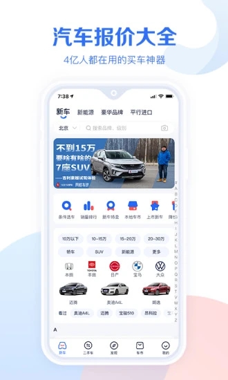 并有车型对比、购车计算、摇号查询等辅助工具。