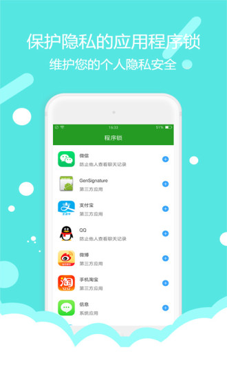 程序锁安卓版是一款由唯美通讯技术公司所开发的工具软件。该应用可以对用户设备上的软件去进行上锁,只有输入正确的密码才可以打开相应的软件,可以防止其他的用户去随意的查看用户的应用,许多的用户都在选择去使用。并且所占的体积也是比较小的,不会去对用户的存储空间造成怎样的影响。程序锁安卓版中运行的时候是流畅的,在应用中也不会有广告的出现,用户可以尽情的去使用,用户可以根据自己情况去设置不同的解锁方式,既有输入密码的额,也有滑动图案等,满足用户各种不同的需求,让用户可以有个不一样的感受。