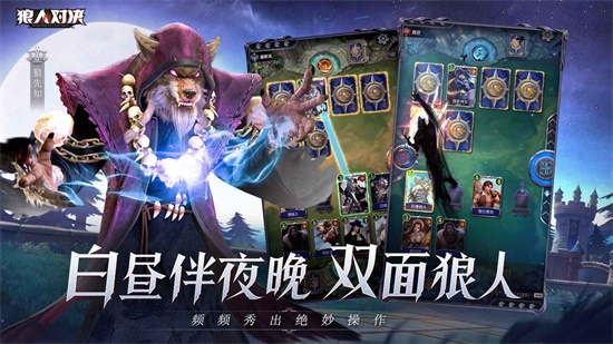 狼人对决手机版以狼人为背景题材开发的一款双机制卡牌对战手机游戏。这款游戏当中引用了大家爱玩的狼人杀的玩法,将其改编成1V1的双人卡牌游戏,对于很多无玩家来说就变肥非常容易上手。在游戏当中为玩家提供了超多的卡牌,很多卡牌甚至玩家登入游戏就可以领取。每张卡牌都有其特殊的技能。在游戏当中还很好的融入狼人杀中的白天与黑夜交替的机制。玩家只要能准确的推测出哪一张卡牌是浪局可以获胜了。喜欢的玩家赶快来是我IT网一起来下载玩玩看吧。