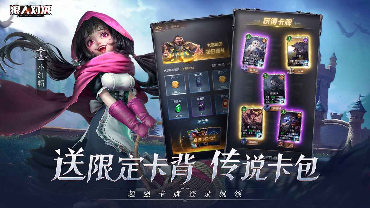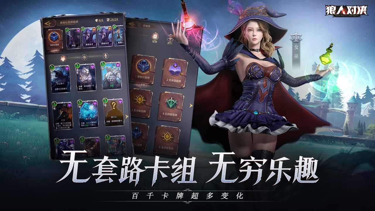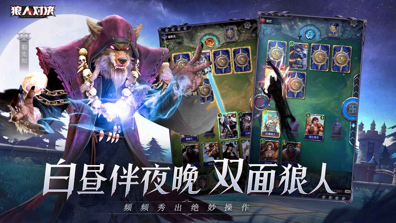 狼人对决最新版是一捆极富创新的日昼双机制卡牌策略有时手机游戏。在游戏当中以竖屏1V1的solo的画面呈现。在狼人杀的加持下,又打破了固有的狼人杀玩法。游戏通过手上掌握的卡牌搭配,在白天黑夜交替中找出并刀掉狼人卡牌,率先找出并倒掉对方的所有狼人卡牌即胜利。在游戏中在卡牌的获取渠道方面也是颇有设计,玩家不用氪金也可以花金币来抽而且获得紫色或金色的卡牌概率较高。游戏的玩法简单,将狼人杀的规则精油修饰添加到卡牌游戏中。喜欢的玩家快来一起下载吧.