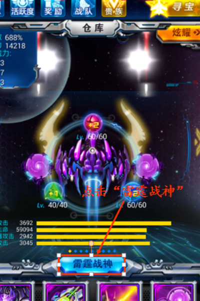 5、在仓库界面点击“雷霆战神”。就可以将战神激活了。