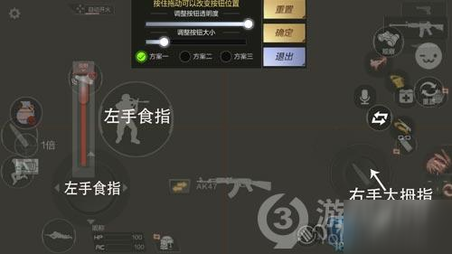 如果之前玩和平精英就是二指,也可以用小编这样的操作布局。左手只用于控制移动键,右手用于控制射击键、下蹲键以及跳跃键。