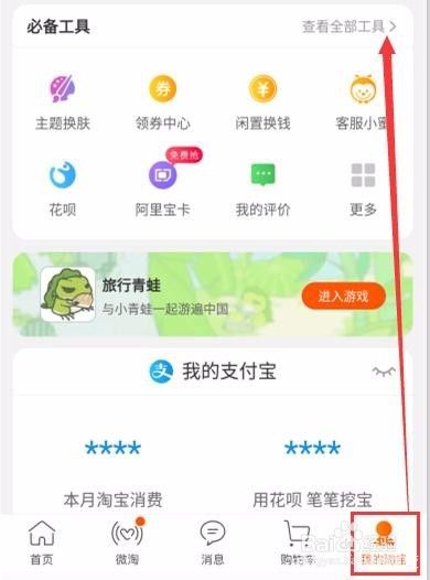 登录你要开店的淘宝账号,然后点击右下角“我的淘宝”,然后再点击“查看全部工具”,如下图所示: