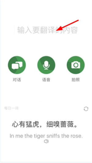 1、下载打开搜狗翻译app,进入首页。你就可以直接在上方通过输入文字进行翻译。