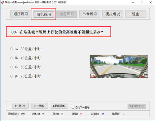 2、单击【随机练习】,会随机从题库抽取一些题目进行测试