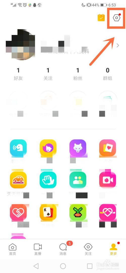 在“更多”的界面,我们选择右上角这个齿轮状图标,进入客户端的功能设置界面。