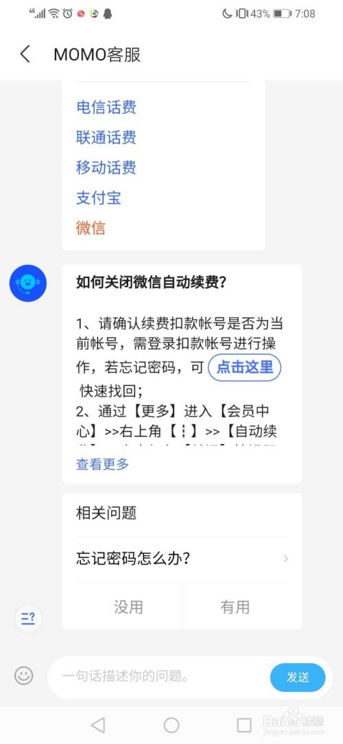 选择WX点击,就有“如何关闭wx自动续费?”的答案出现,而且还列举了详细的操作步骤。