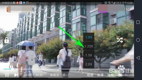 界面底部弹出四种倍速1.0x,1.25x,1.5x和2.0x以后,点击想要使用播放倍速