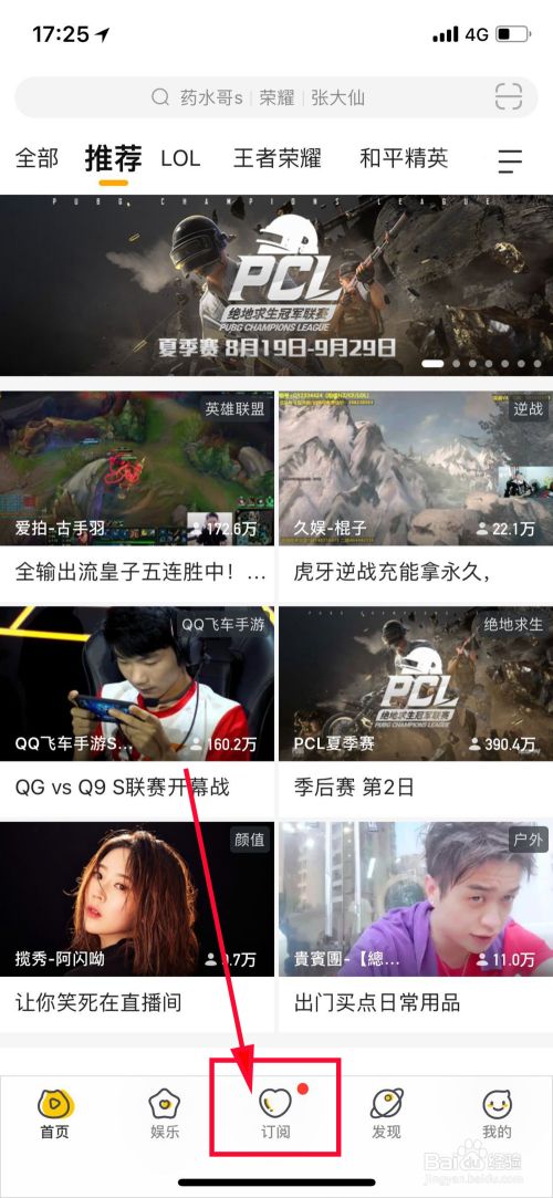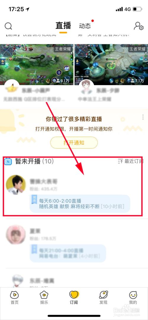 在虎牙直播推荐首页中,我们点击【订阅】,进入我们订阅的直播界面,如图所示。