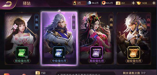 奇袭流的核心为【韩非】,搭配【白起】可以让敌人全体怯战10秒无法攻击,此外还有【孙膑】、【张仪】都是比较核心的存在,孙膑既可以眩晕也可以抗,张仪则可以补上阵容的输出,还剩一个位置各位可以自由选择,比如紫将乐羊、春申君等。