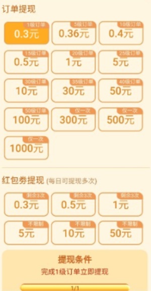 这款游戏确实是可以领红包提现的,而且从图片上来看完成任务订单奖励确实很高,只要坚持看视频广告就行,赚钱很多,但是提现不理想。首先订单提现最低是0.3元。按照订单等级来提现,可5元以上的提现就会出现套路,需要邀请下线(好友),还有一个就是红包提现红包,元宝奖励不高,一天也就收入个一元左右,这还是得不停的种花,看视频广告才可以。