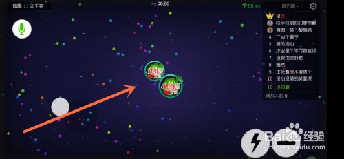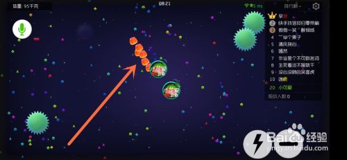 进入游戏后快速吃发育成大球状态,之后分成两小球。如下图所示
