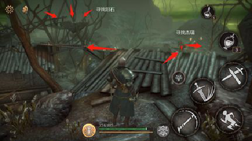 一、从第一个祭坛出发,经过黑精商人后来到屋顶的岔路口位置。