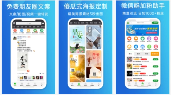 天天朋友圈app是一款免费用户提供朋友圈文案和素材的手机共享社区平台。在这里,各种微商文案素材、朋友圈搞笑视频、朋友圈热门转发素材、高热度的文字配图等等素材这里全部都有。目前,它已成为广大微商朋友和企业文案写手最常用的必备软件。
