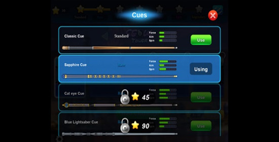 3、超多五十多种绚丽多彩的球杆任你选择,可以对它们进行收集,获得专属成就