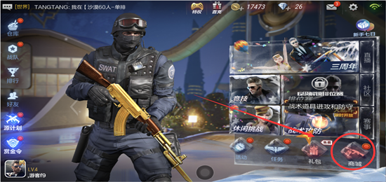 1.第一步,打开游戏,点击商城位置,进入商城。