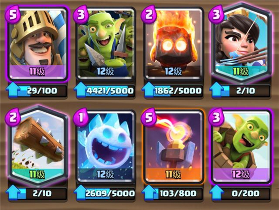 1、初始卡1/4几率获得,在完成新手训练的过程中会获得王子、龙宝宝、女巫、骷髅军团4张卡中的一张。