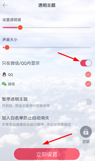 选中透明主题之后,用户需要开启“只在微信/QQ内显示”的功能