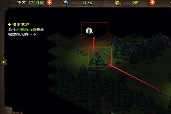 1、需要触发初出茅庐的任务,前往西边的山洞营救小环。
