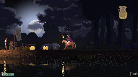 在初始的领地上,玩家能够看到一些乞丐,只需要在他们身旁按↓键投掷金币就可以招募他们。收到硬币的乞丐会换了一身服装成为居民并且前往领地领取工作。