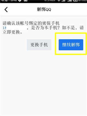 系统提示要用手机验证,点击”继续解绑”。